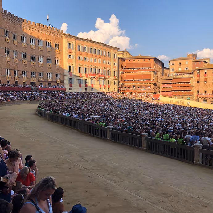 Il Palio è molto più che una semplice manifestazione, è in realtà un’esperienza che si apprezza solo dal vivo. Palazzo Chigi Zondadari mette a disposizione dei suoi clienti una location unica ed esclusiva che dà la possibilità di godere del massimo relax all’interno della propria corte nelle ore immediatamente precedenti la corsa, al riparo dal caldo estivo e dalla confusione. Il pacchetto “hospitality”, associato all’acquisto del biglietto per il posto in palco, dà diritto di accedere nell’area della Corte del Palazzo (vedi mappa). Ogni ospite, dopo aver ricevuto un gadget di benvenuto, potrà assaporare una bevanda analcolica e gustare uno snack standosene comodamente seduto, senza rinunciare a vedere la passeggiata storica grazie al maxi schermo tv. Sarà inoltre possibile richiedere servizi extra dal menù à la carte.